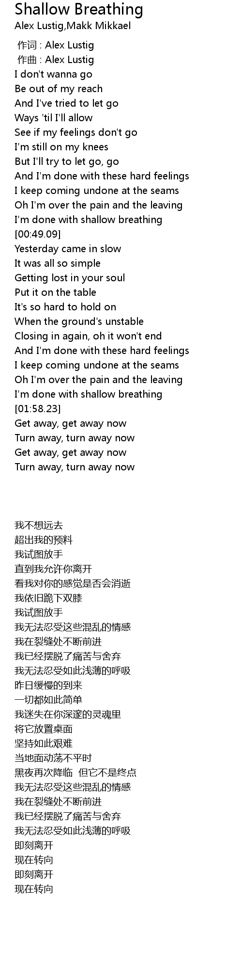 | [00:44.14] | I'm done with shallow breathing |