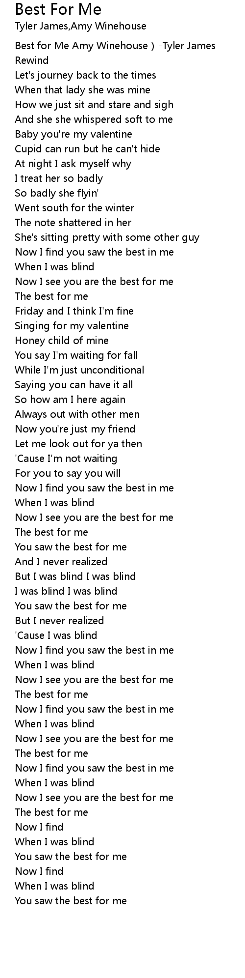| [00:05.492] | Best for Me Amy Winehouse Tyler James |