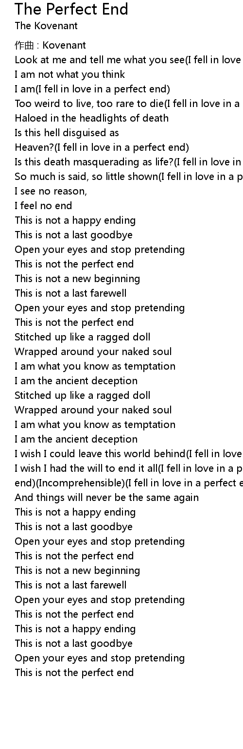 | I wish I had the will to end it all I fell in love in a perfect end Incomprehensible I fell in love in a perfect end | |