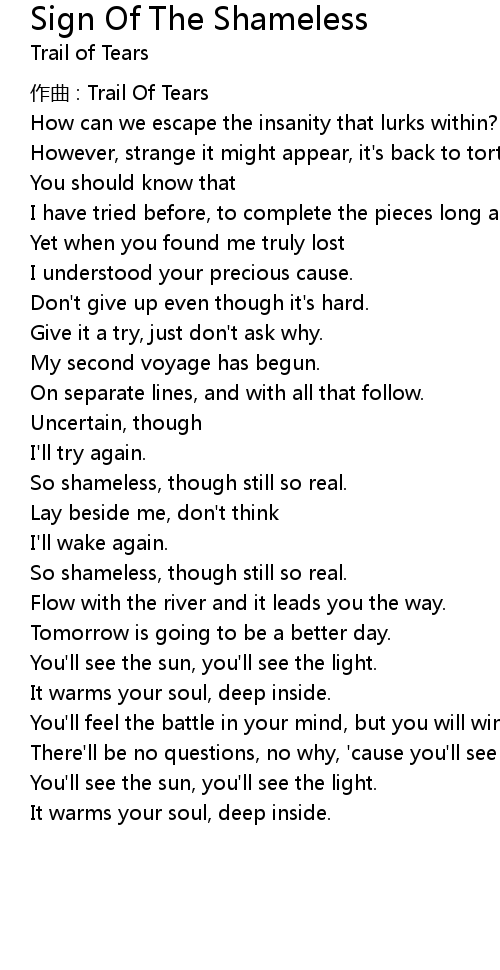 | zuò qǔ : Trail Of Tears | |