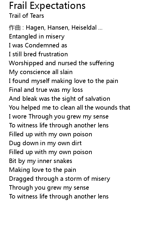 | Song | Frail Expectations |