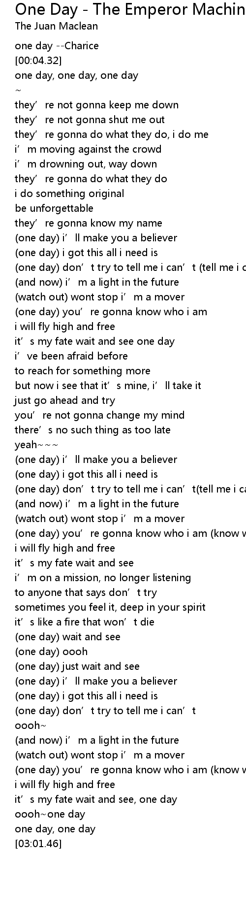 | [00:50.75] | (one day) you’re gonna know who i am |