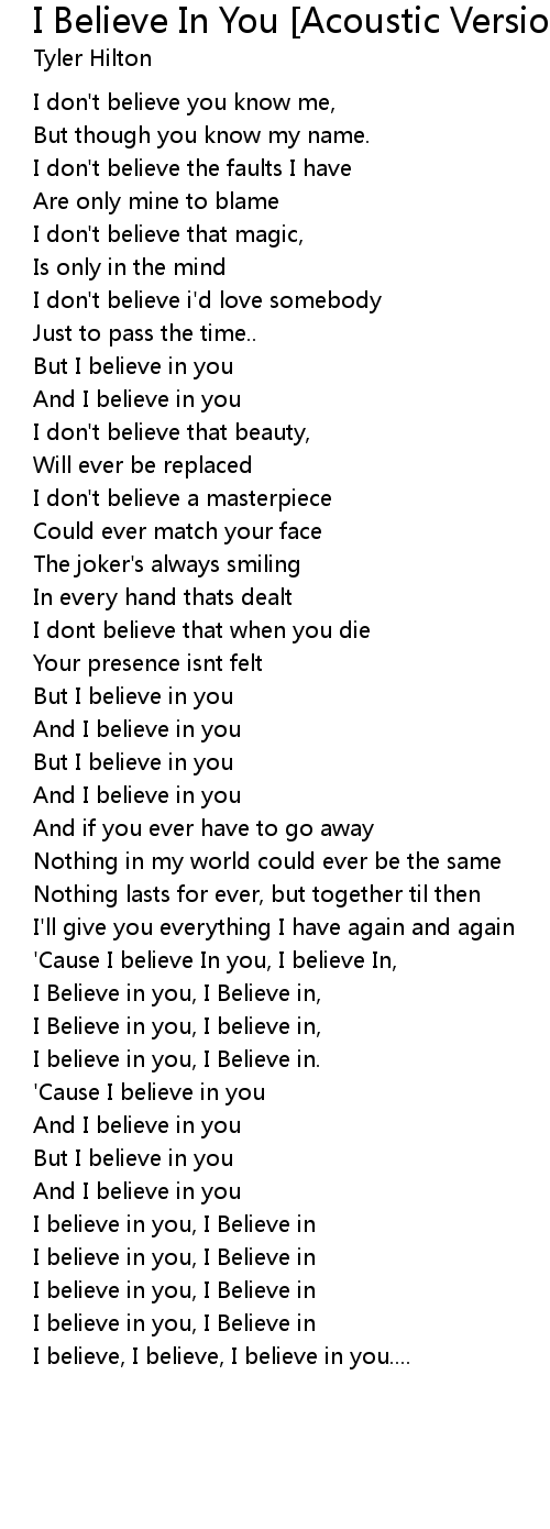 I believe in you, I Believe in |
