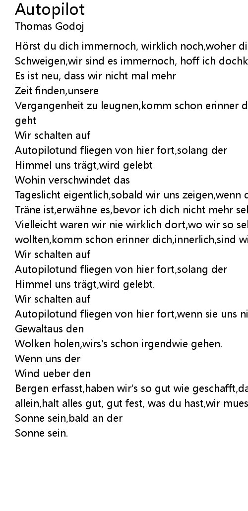 | Autopilotund fliegen von hier fort,solang der | |