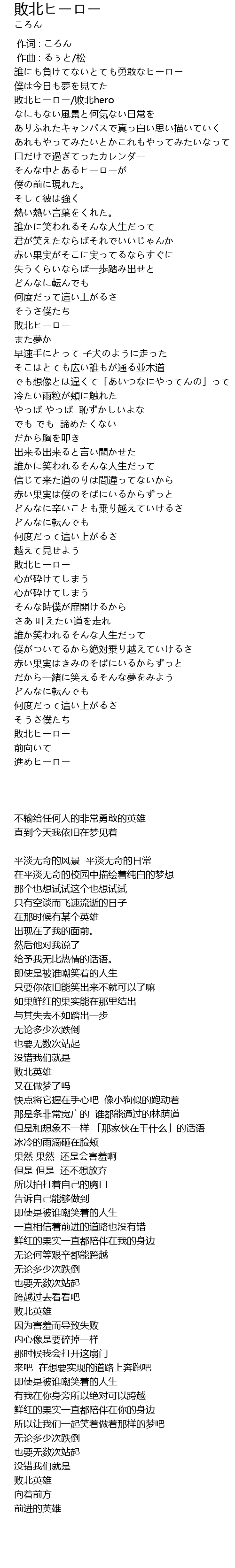 | [00:11.30] | 敗北ヒーロー/败北hero |
