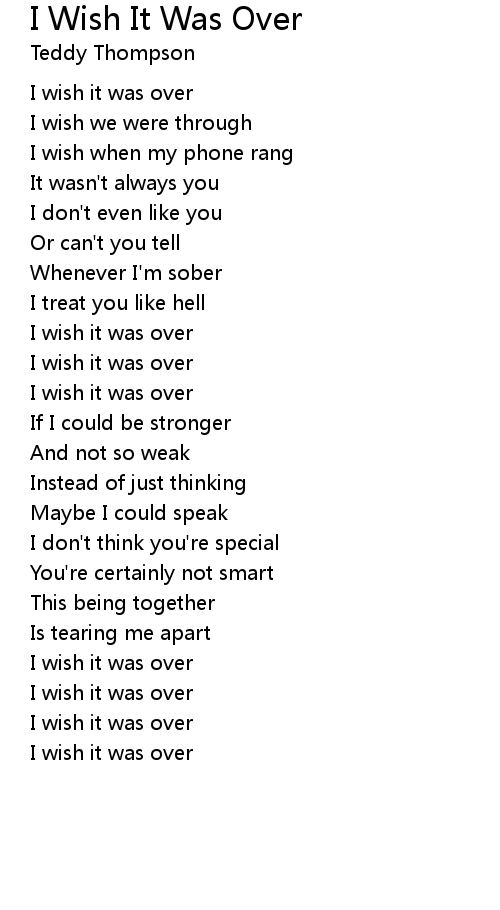 | Song | I Wish It Was Over |
