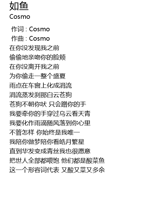 | [00:54.757] | 我要化作雨滴随风落到你心里 |