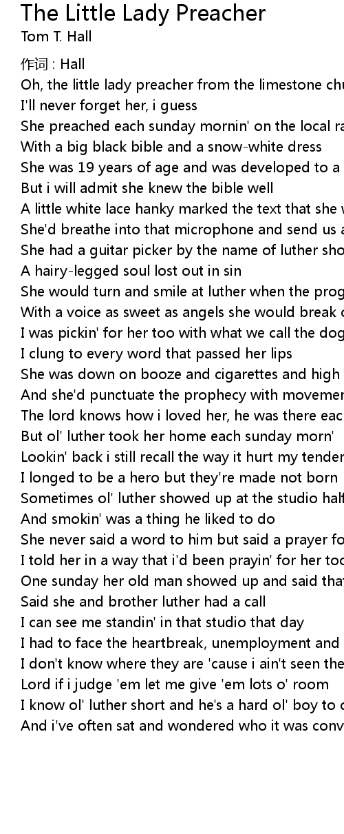| Oh, the little lady preacher from the limestone church | |