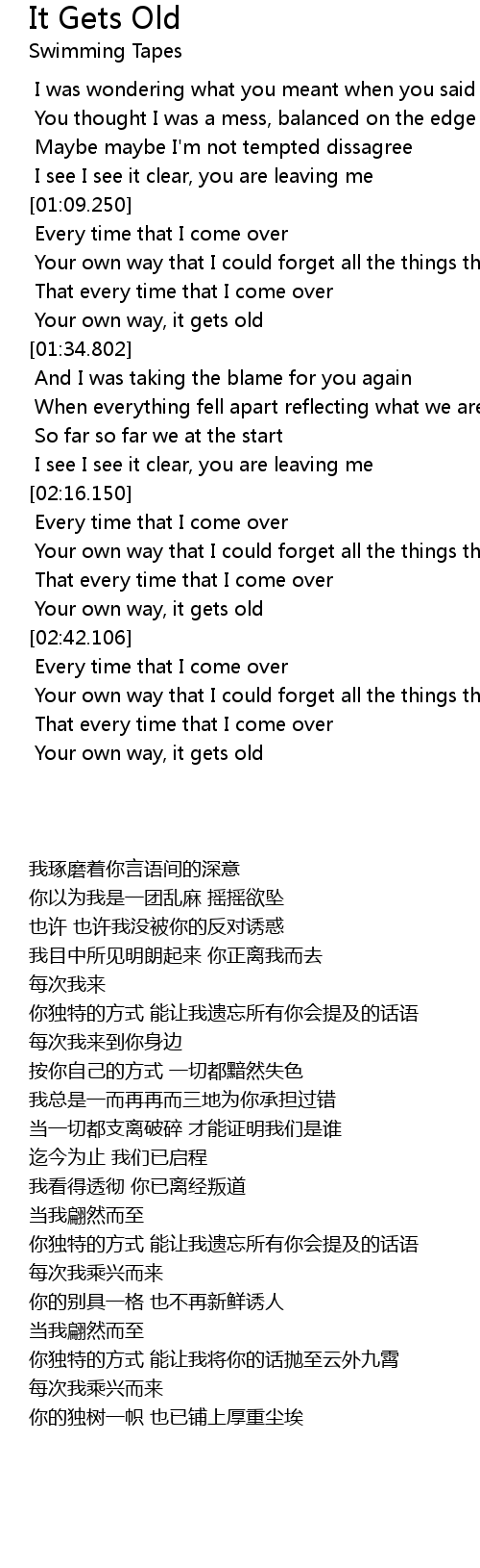 Your own way, it gets old |