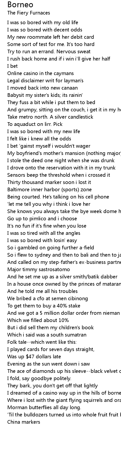 I dreamed of a casino way up in the hills of borneo |