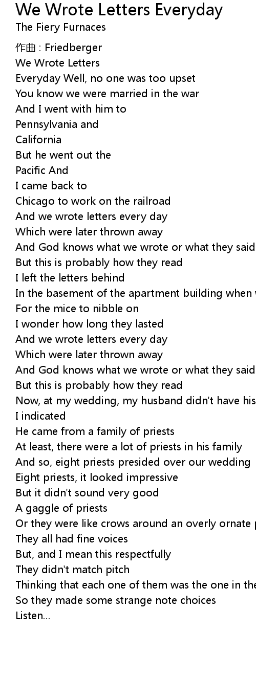 | Song | We Wrote Letters Everyday |