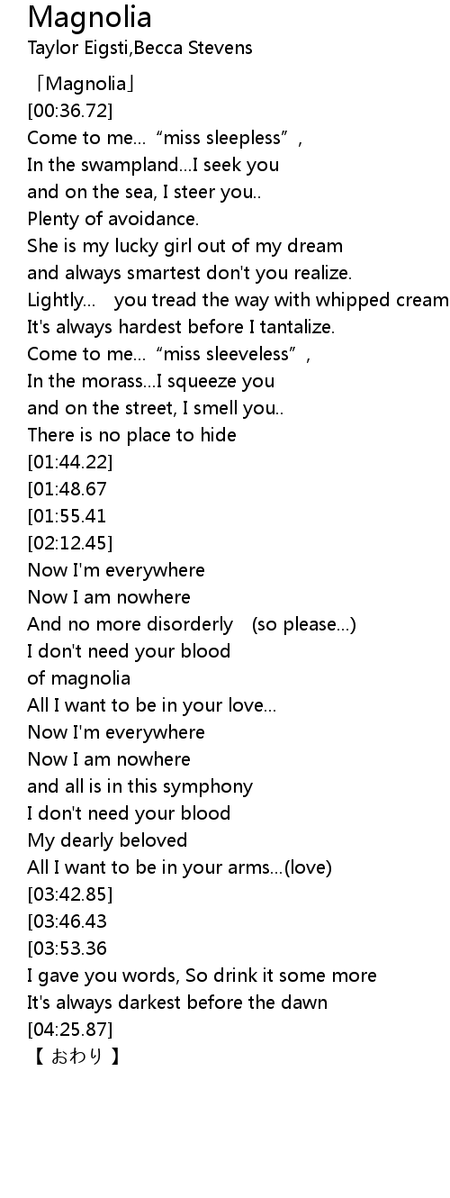 | [00:38.72] | Come to me...“miss sleepless”, |