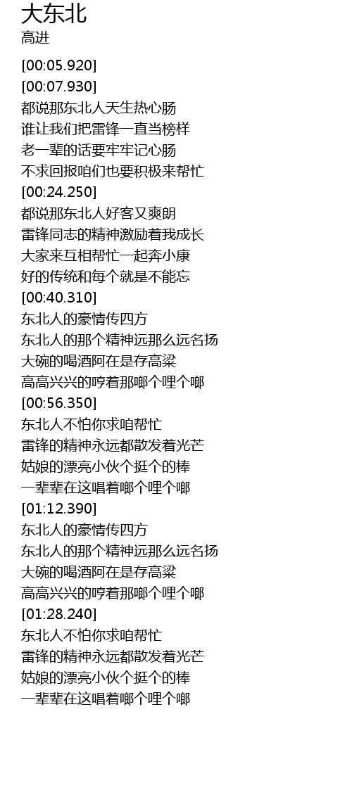| [00:56.570] | 东北人不怕你求咱帮忙 |