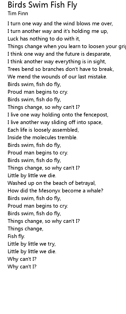 | Birds swim, fish do fly, | |