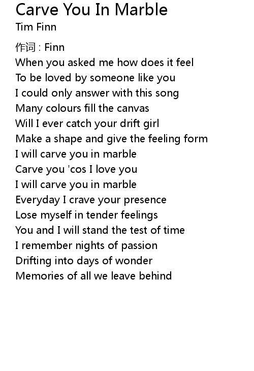 | Song | Carve You In Marble |
