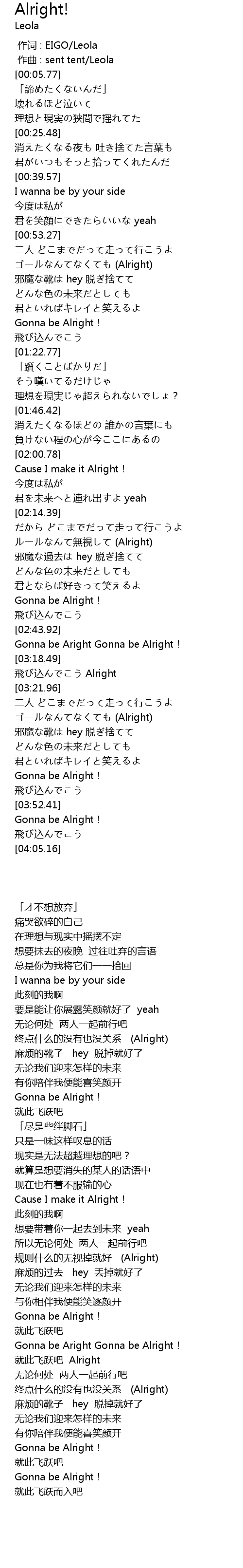 | [03:12.41] | Gonna be Aright Gonna be Alright! |