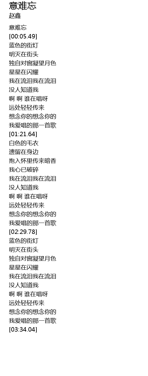| [02:34.07] | 蓝色的街灯 |