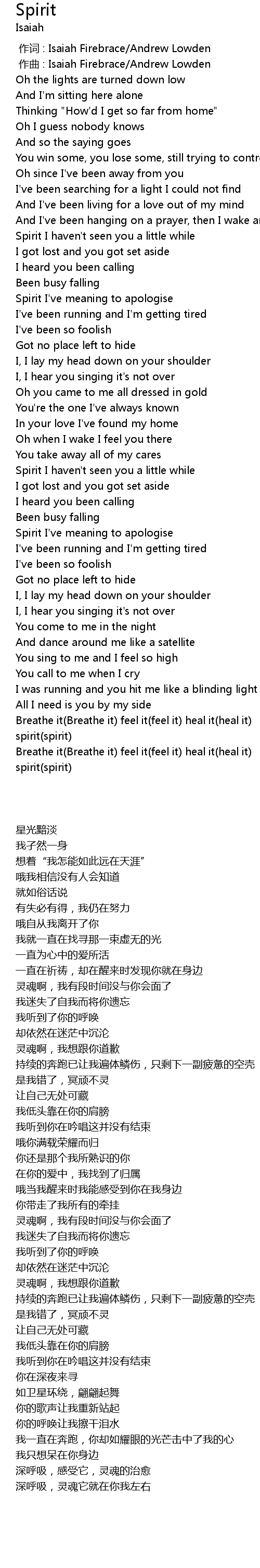 | [00:57.03] | Spirit I haven't seen you a little while |