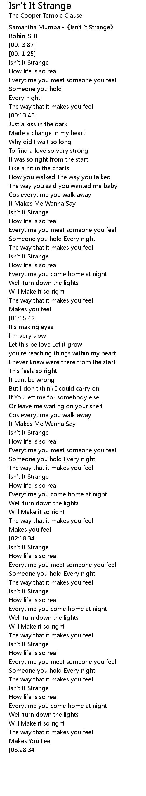 | [02:03.20] | Isn t It Strange |