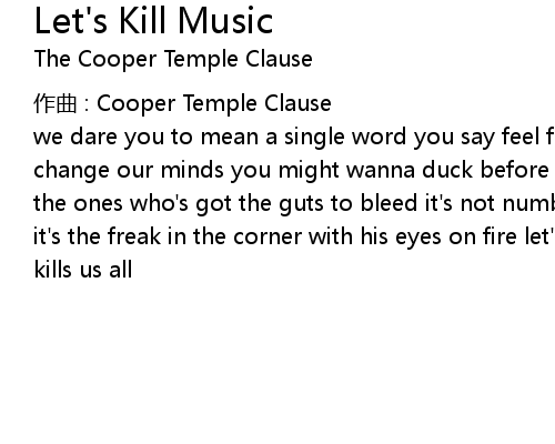 | we dare you to mean a single word you say feel free if you've time to try and change our minds you might wanna duck before you lose your head it seems we're the ones who's got the guts to bleed it's not number one who will come out alive it's the freak in the corner with his eyes on fire let's kill music before it kills us all |