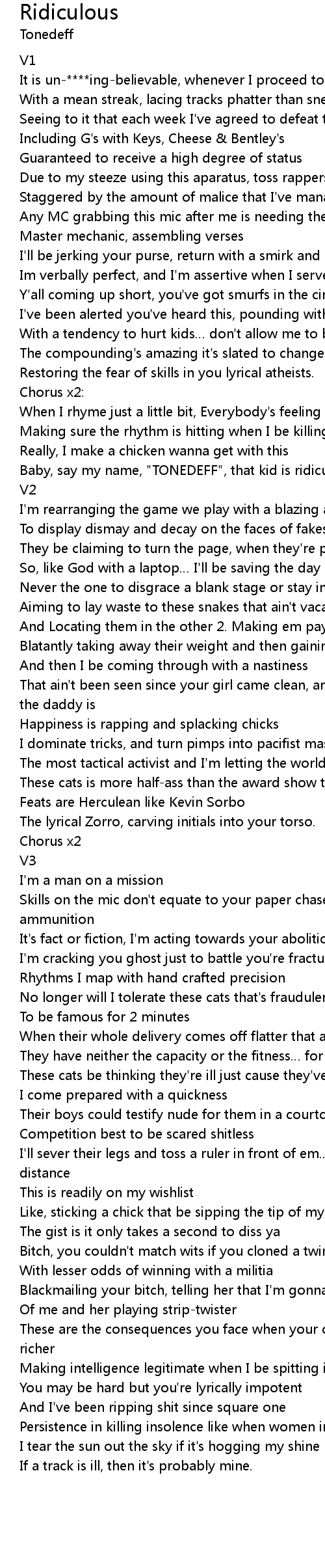 | Baby, say my name, " TONEDEFF", that kid is ridiculous. | |