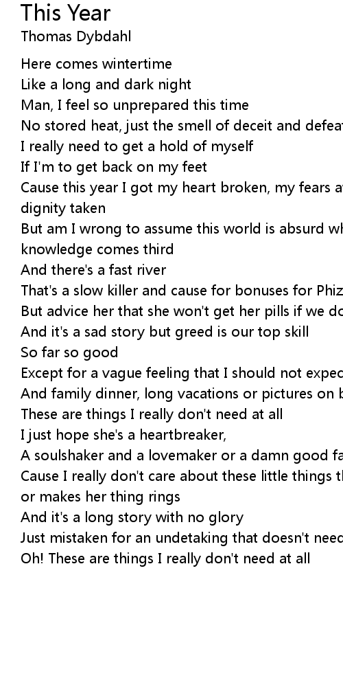 Cause this year I got my heart broken, my fears awoken, my beliefs shaken and my dignity taken |