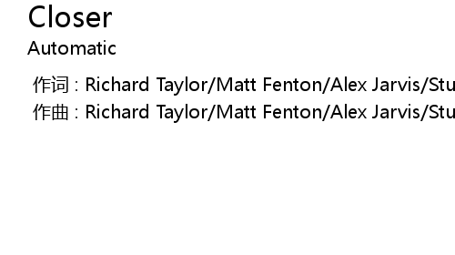 | [00:00.00-1] | 作词 : Richard Taylor/Matt Fenton/Alex Jarvis/Stuart McFarlane |