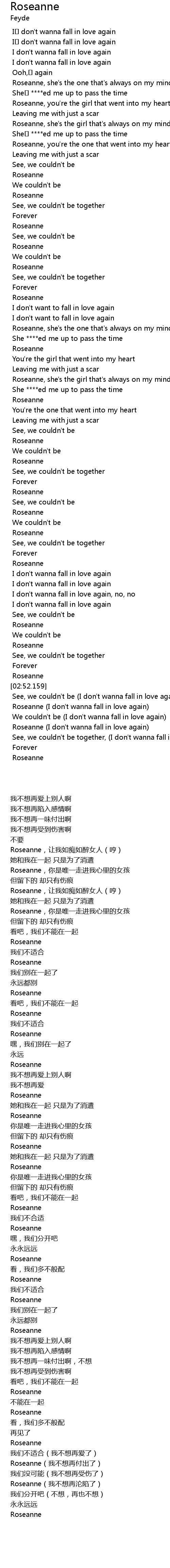 | [02:57.915] | Roseanne I don' t wanna fall in love again |