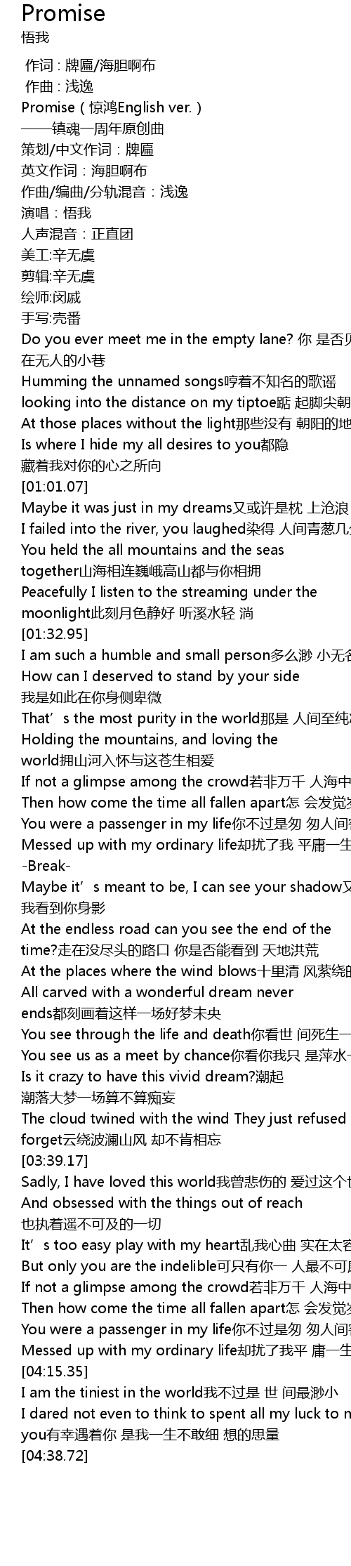 | [00:03.23] | Promise(惊鸿English ver.) |