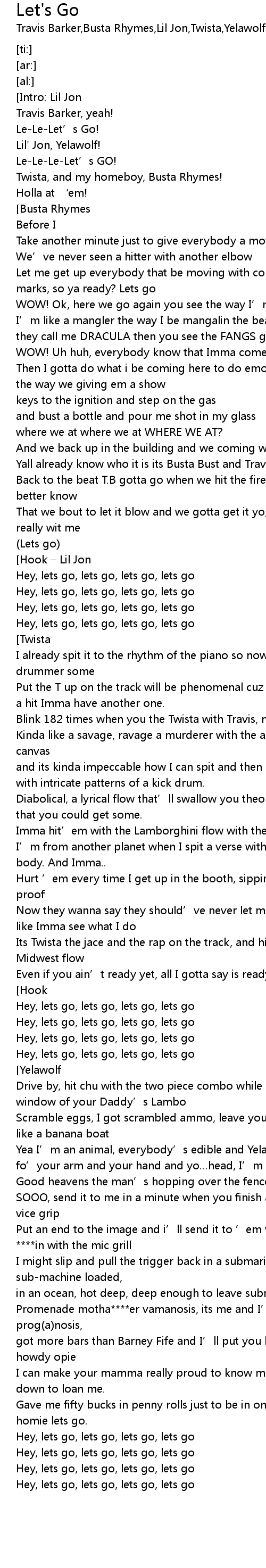 | [02:33.07] | Hey, lets go, lets go, lets go, lets go |