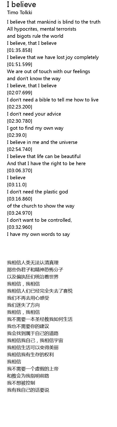 | [01:06.89] | I believe that mankind is blind to the truth |