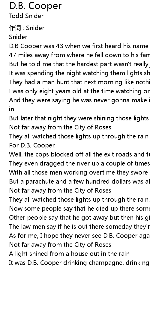 | Song | D.B. Cooper |