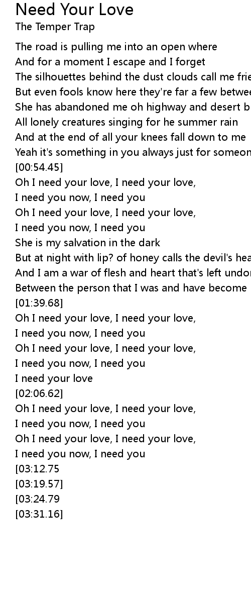 Oh I need your love, I need your love, |