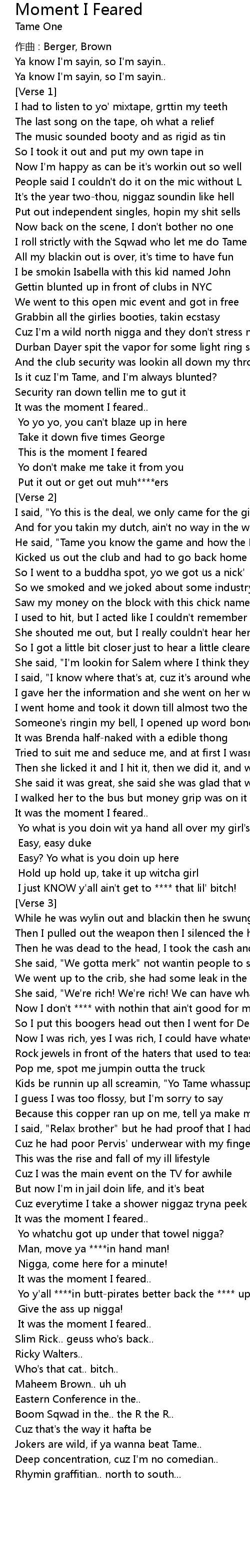 | Song | Moment I Feared |