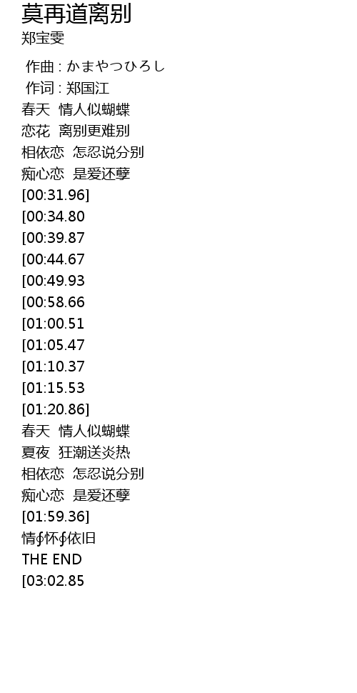 | [02:42.80][01:15.53] | 莫再道 莫再道离别 |