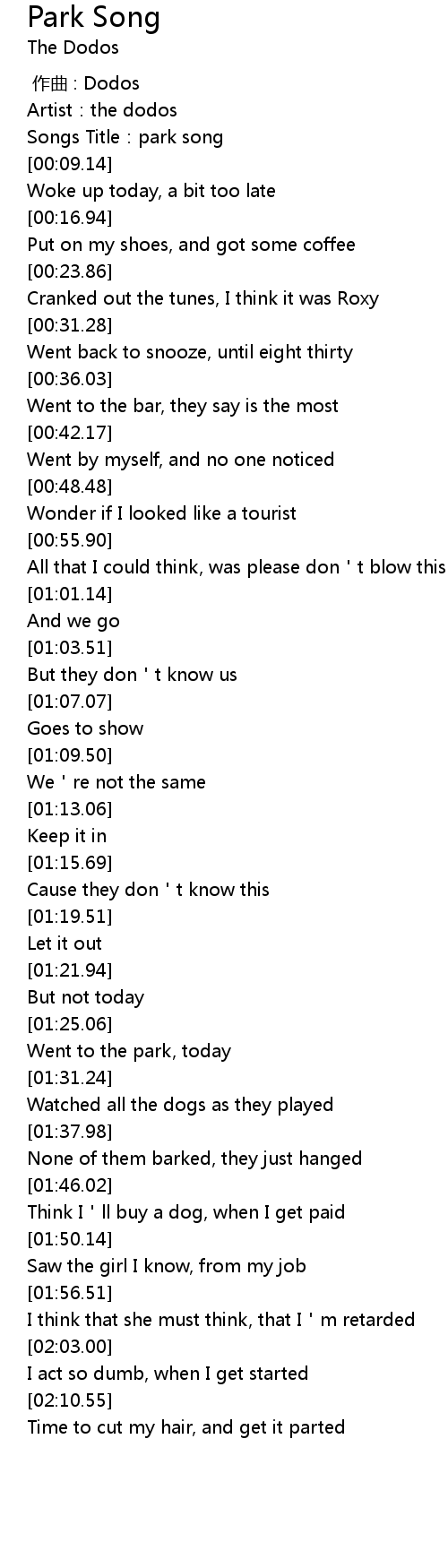 | [01:59.06] | I think that she must think, that I'm retarded |