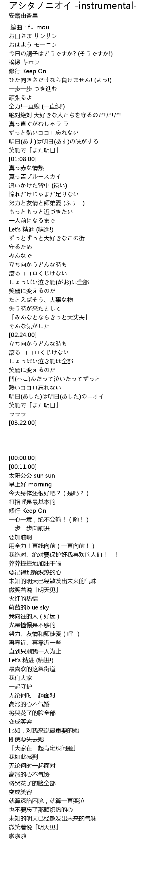 | [03:00.00] | 明日(あした)は明日(あした)のニオイ |