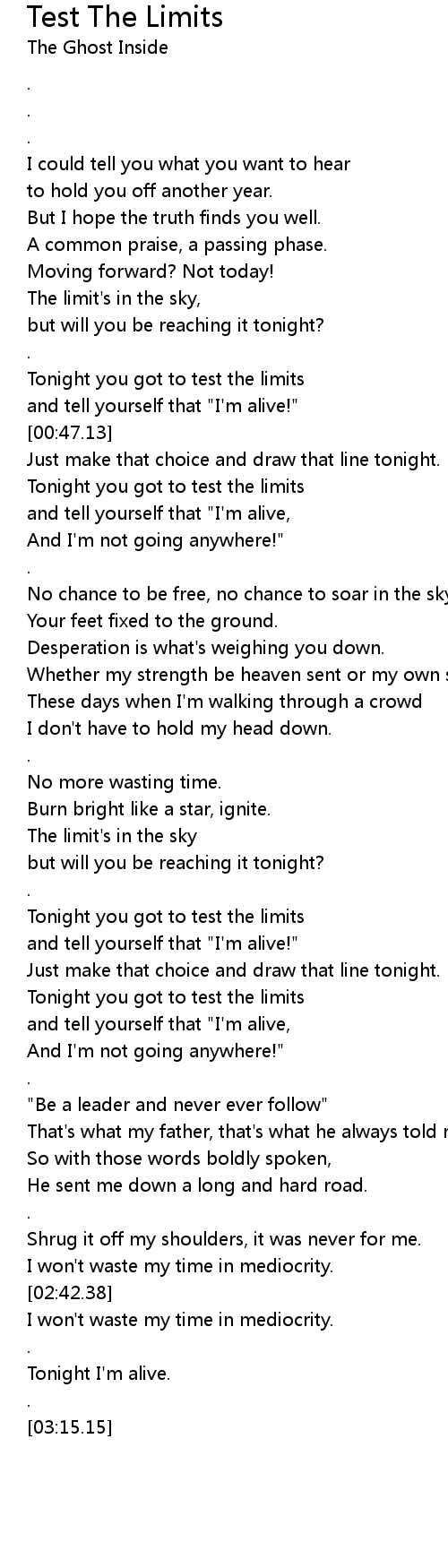 Tonight you got to test the limits |