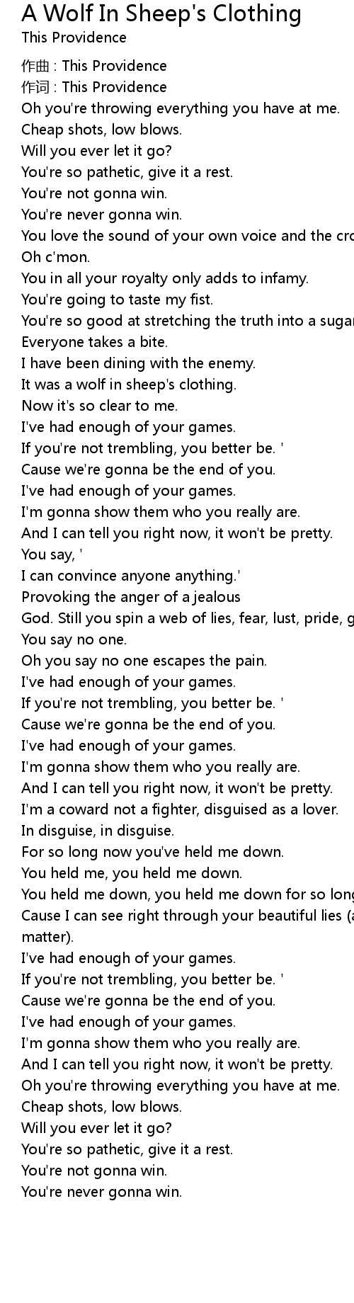 | Cause I can see right through your beautiful lies and those eyes for that matter. | |
