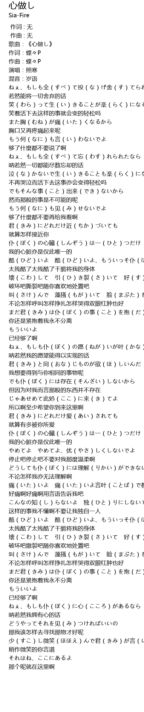 | [03:17.799] | 酷(ひど)いよ 酷(ひど)いよ、もういっそ仆(ぼく)の体(からだ)を |
