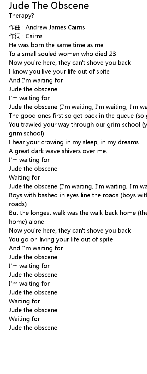 | Jude the obscene I' m waiting, I' m waiting, I' m waiting, I' m waiting, I' m | |