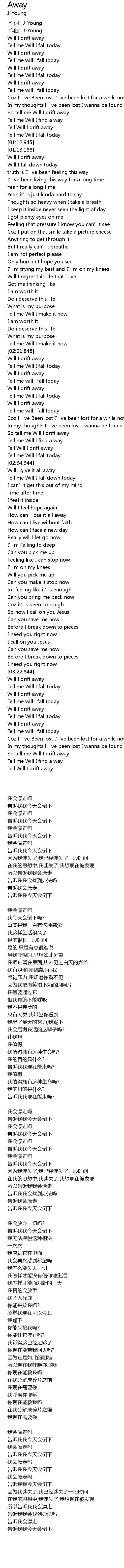 | [02:32.593] | Tell Will I drift away |
