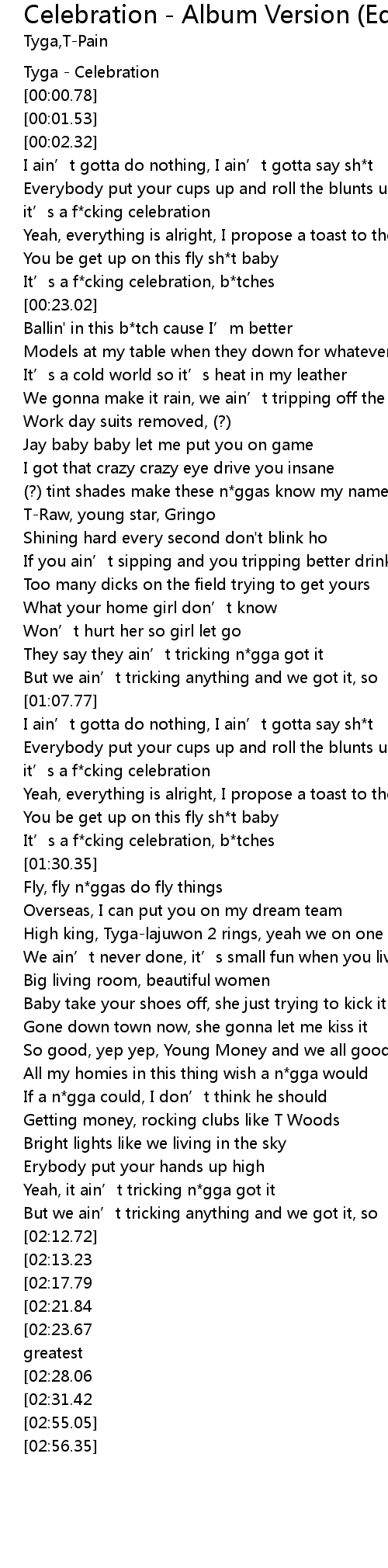 | [00:00.00] | Tyga - Celebration |