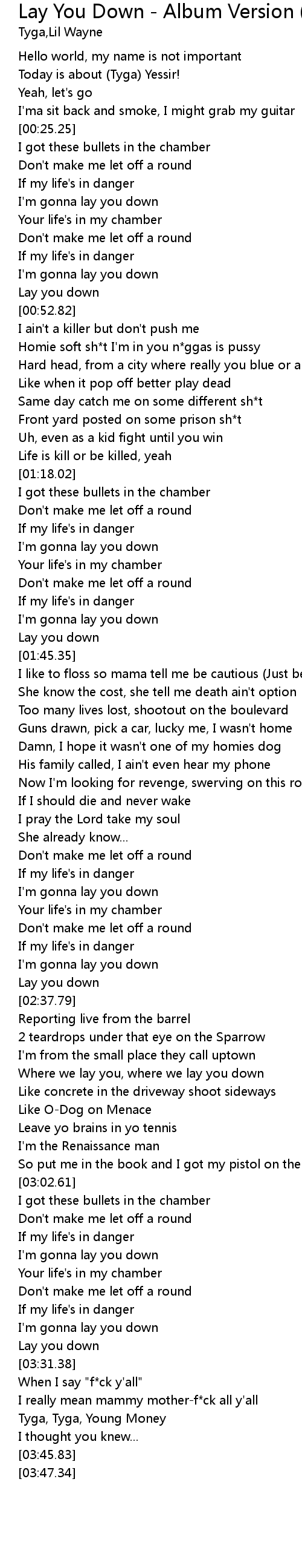 | [03:34.53] | I really mean mammy mother-f*ck all y'all |