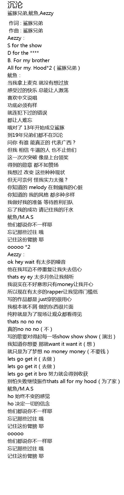 | [00:13.374] | All for my. Hood 2 shā tún xiōng dì |