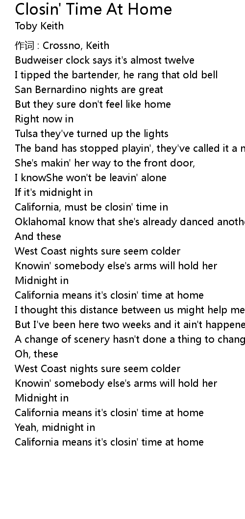| California, must be closin' time in | |