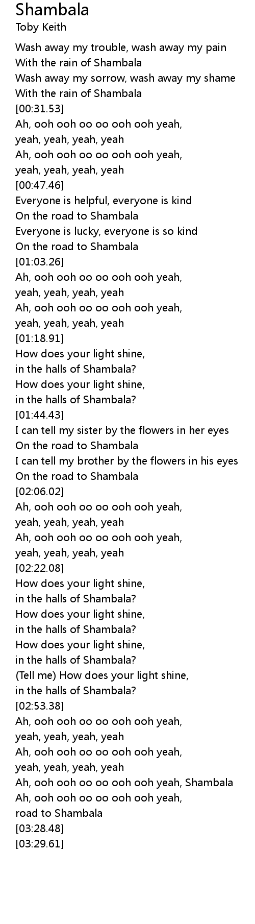 Ah, ooh ooh oo oo ooh ooh yeah, Shambala |