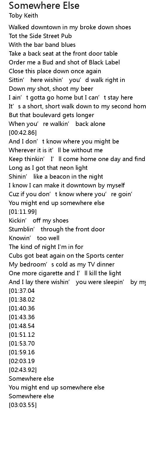 | [02:57.99] | Somewhere else |