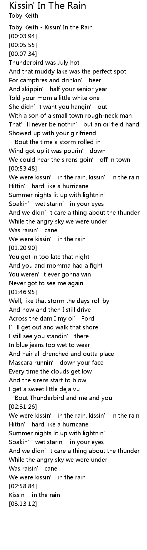 | [00:01.42] | Toby Keith Kissin' In the Rain |