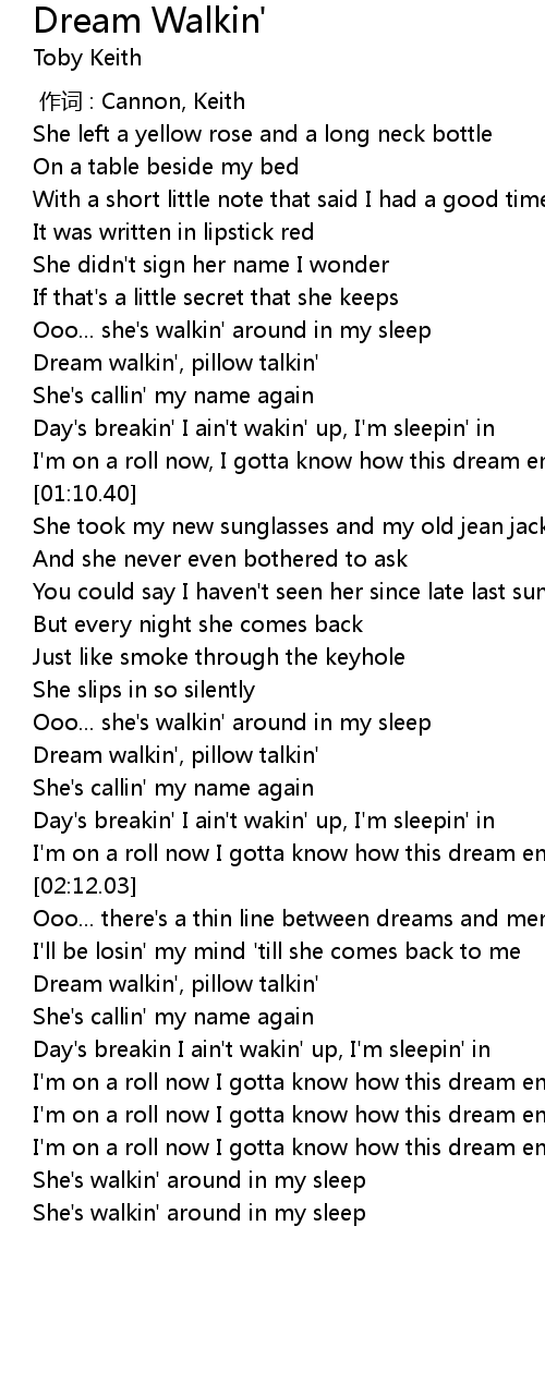 | [01:42.51] | Ooo... she's walkin' around in my sleep |